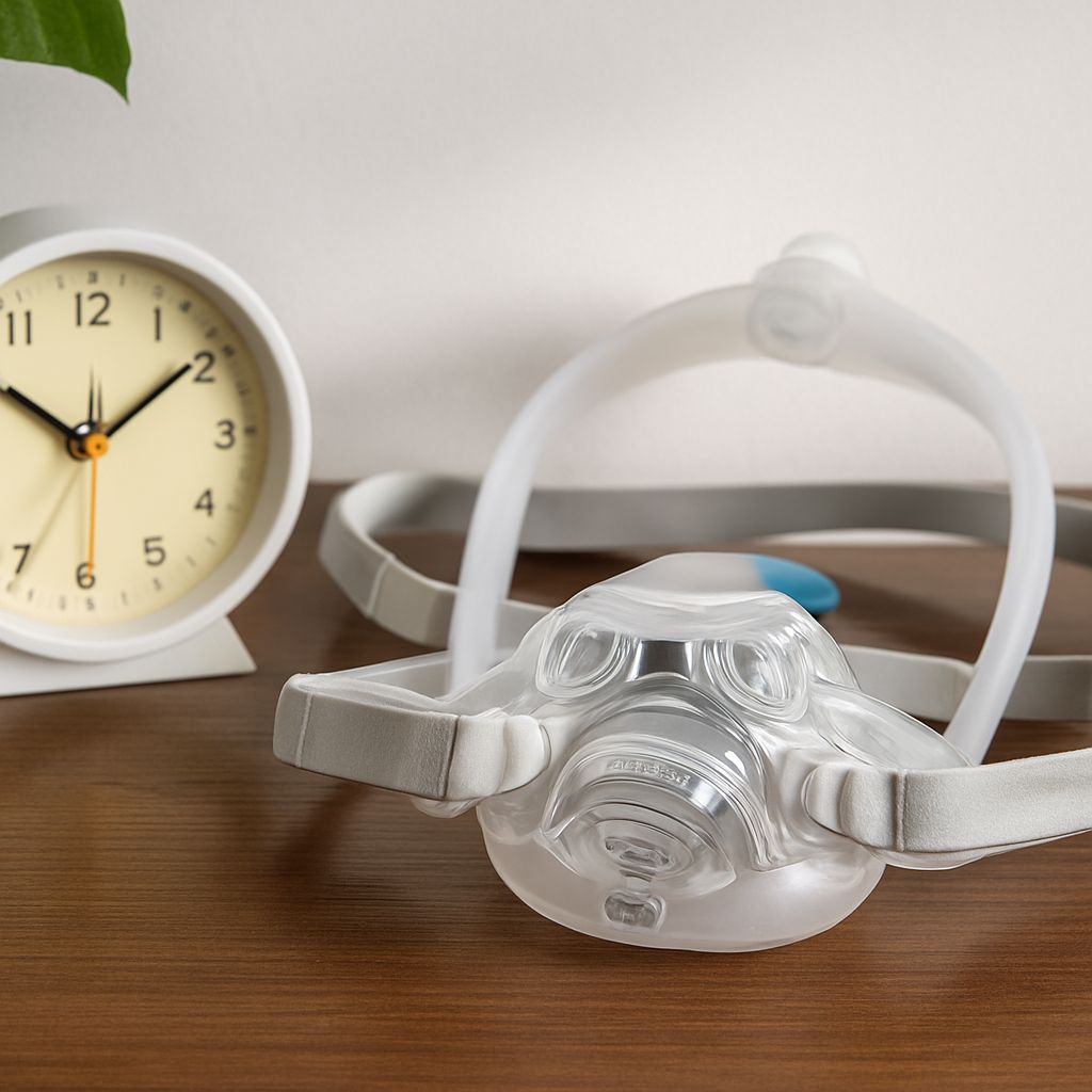 A well-fitting mask should seal under therapy pressure without requiring the headgear to be tightened beyond the point where two fingers can slide between the strap and the head. Overtightened headgear causes forehead marks, cheek redness, and CSR (central sensitization response) to the mask within 8–12 weeks, leading to abandonment.